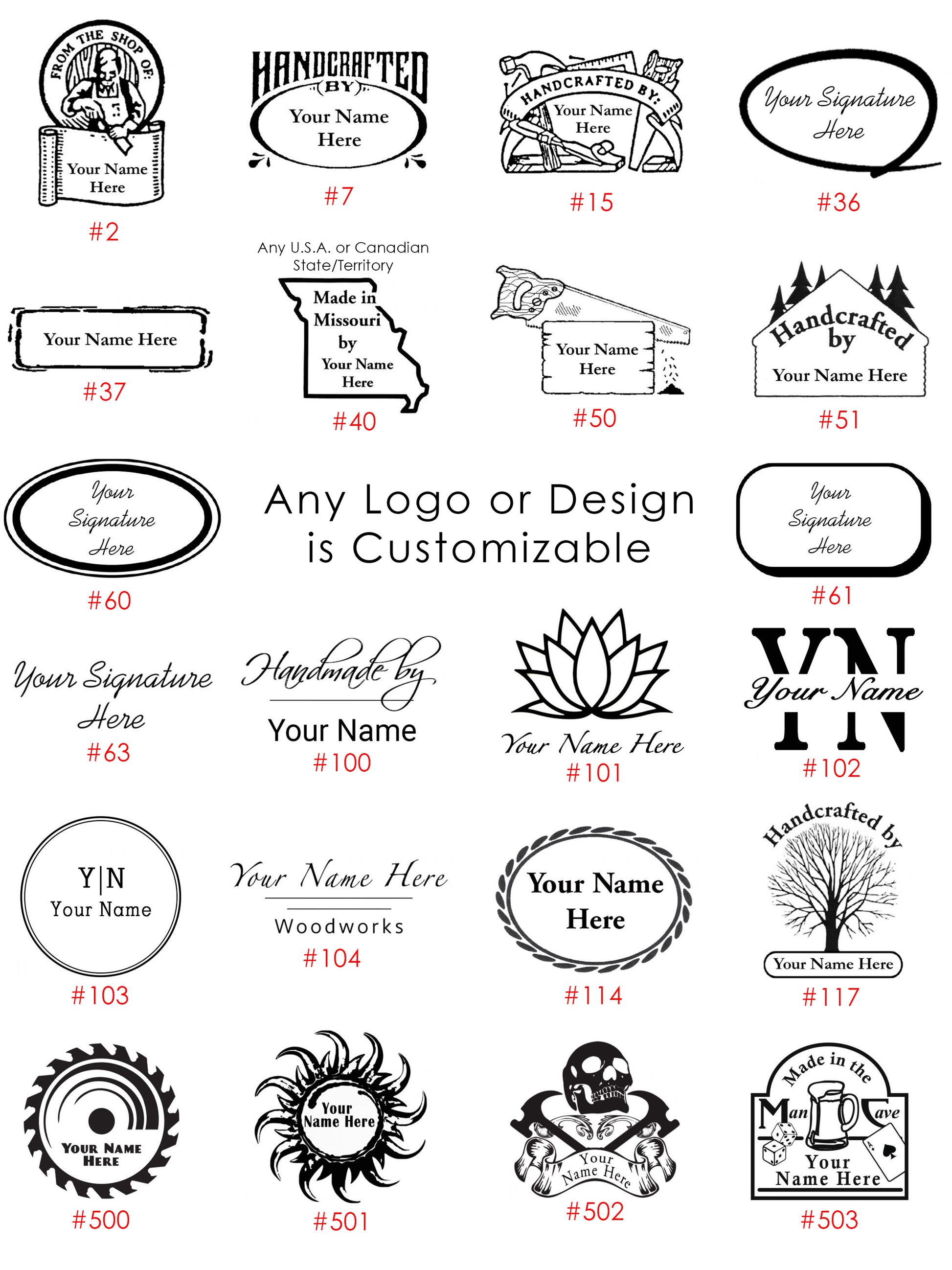 Personalized Branding Iron Templates - Wood & Leather Stamp